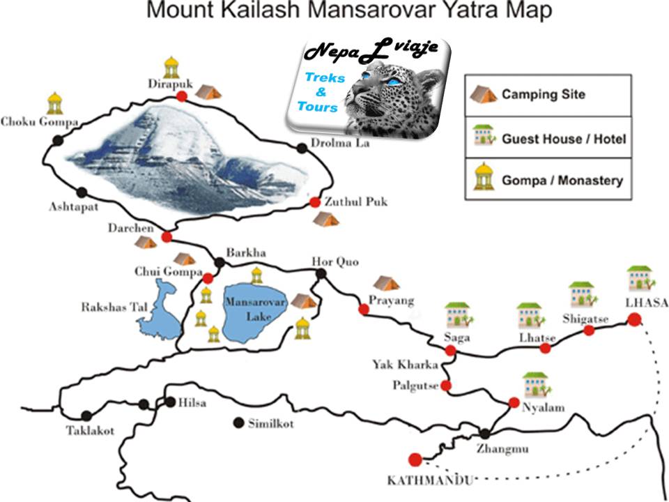 Para los tibetanos es el centro de Bon, el alma del país que asegura la protección. Con 6.714 metros, Kailash tiene una nieve brillante cristalina que se eleva sobre la meseta del Tíbet como una joya, visible desde kilómetros de distancia. Manasarovar es famoso como uno de los lagos más altos del mundo. Mt. Kailash es considerado el lugar de alimentación del chakra de la cabeza de Shiva y por lo tanto la manifestación de la rueda ilusoria de la emanación sensorial. Desde que Kailash es el monte Sumeru, su cumbre es considerada el paraíso para los dioses de alto nivel, también es de los cinco Budas del cielo. |